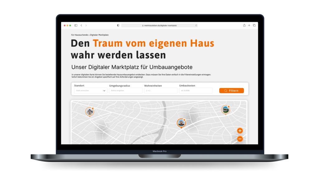 MehrHausLeben e.V. betreibt einen digitalen Marktplatz für Hausumbauangebote, auf welche sich Haussuchende bewerben können.