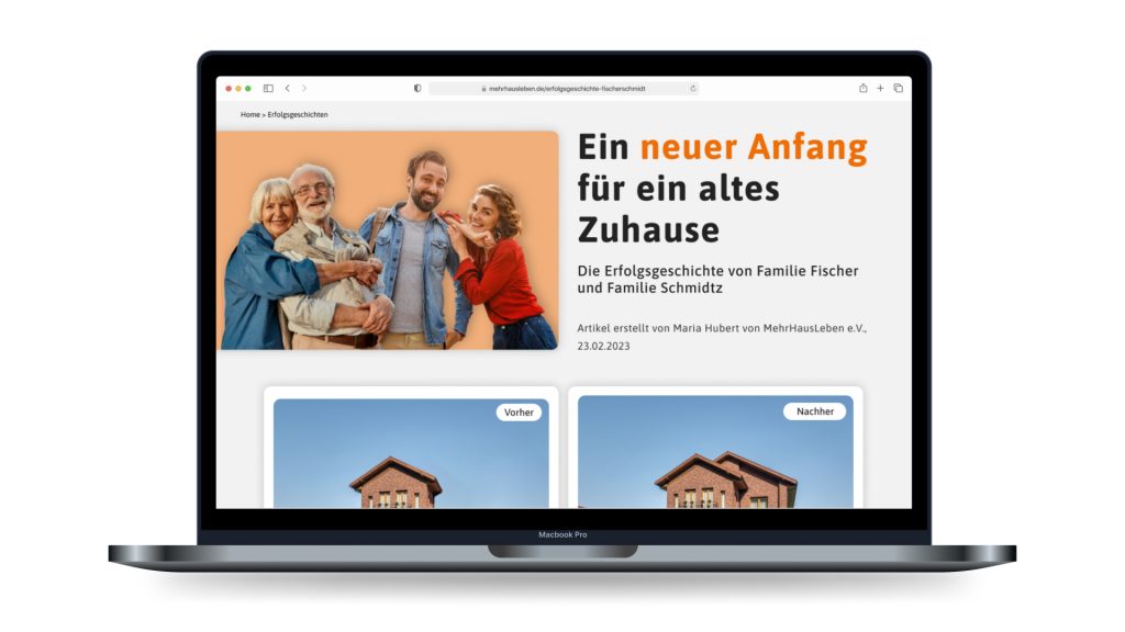 Durch die Zusammenarbeit mit erfahrenen Architekten, Juristen und Finanzexperten kann das gemeinschaftliche Umbauprojekt für beide Parteien abgesichert und erfolgreich durchgeführt werden. Am Ende entstehen durch jedes einzelne Umbauprojekt eine weitere Erfolgsgeschichte, welche auf der Webseite von MehrHausLeben e.V. neue Hausbesitzende und Haussuchen inspiriert.